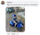 "I got the Rosso kids ATV in blue for my son and it's way better than I expected! It's like a real ATV, just smaller! I'm kind of jealous of all of the fun he's having and now I want a bike tool"
