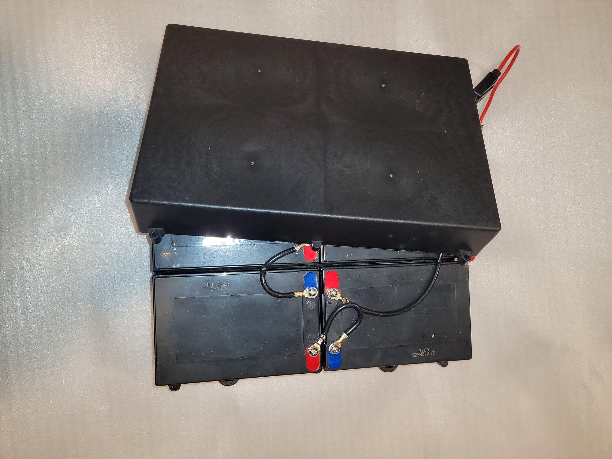 48 volt battery pack for the eQuad Q inside a protective plastic case.