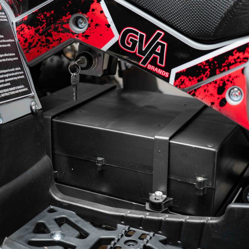 Powered by a 48V battery, this electric kids’ ATV offers longer ride times and consistent performance for extended outdoor fun.