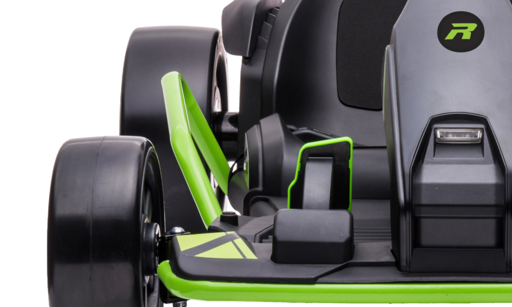 The M3 go-kart has smooth plastic tires, which help aid in the go-carts drifting feature.